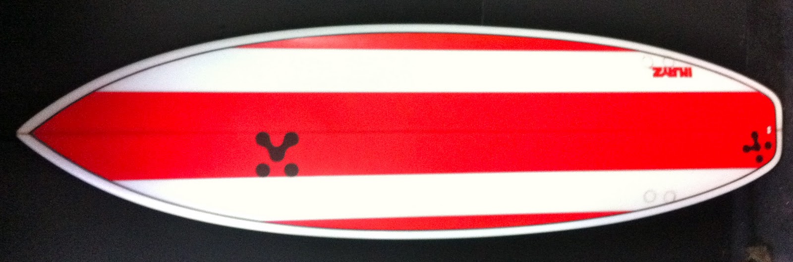 | small to medium wave board, flattened entry rocker for better paddling, slightly wider for those fatter slack days yet pulled n through the tail to allow the board to feel responsive |